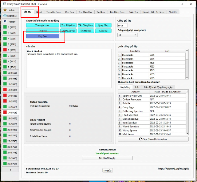 Số lần bạn muốn chợ đen làm mới và tìm kiếm các mặt hàng.