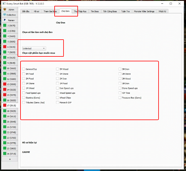 Lưu ý: Bạn chỉ có thể mua Thực phẩm / Sắt / Gỗ / Đá bằng vàng tại thị trường chợ đen cấp thấp hơn.