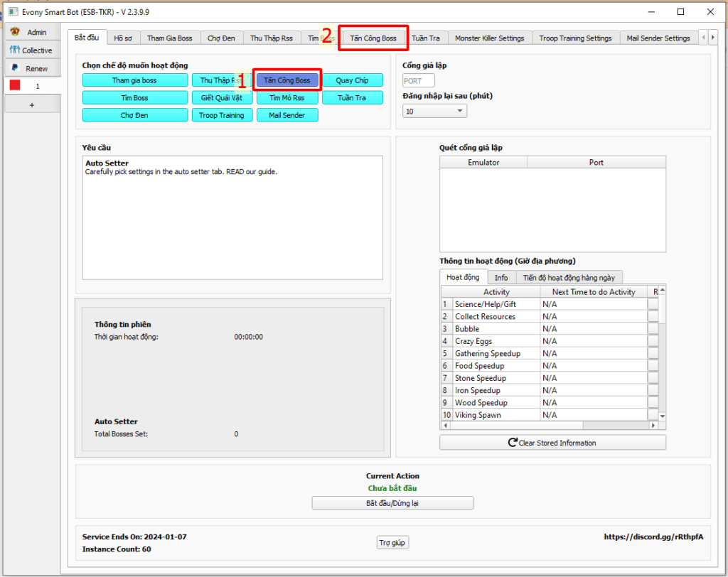 - Đi tới tab Cài đặt tấn công boss trong các tab ở trên
