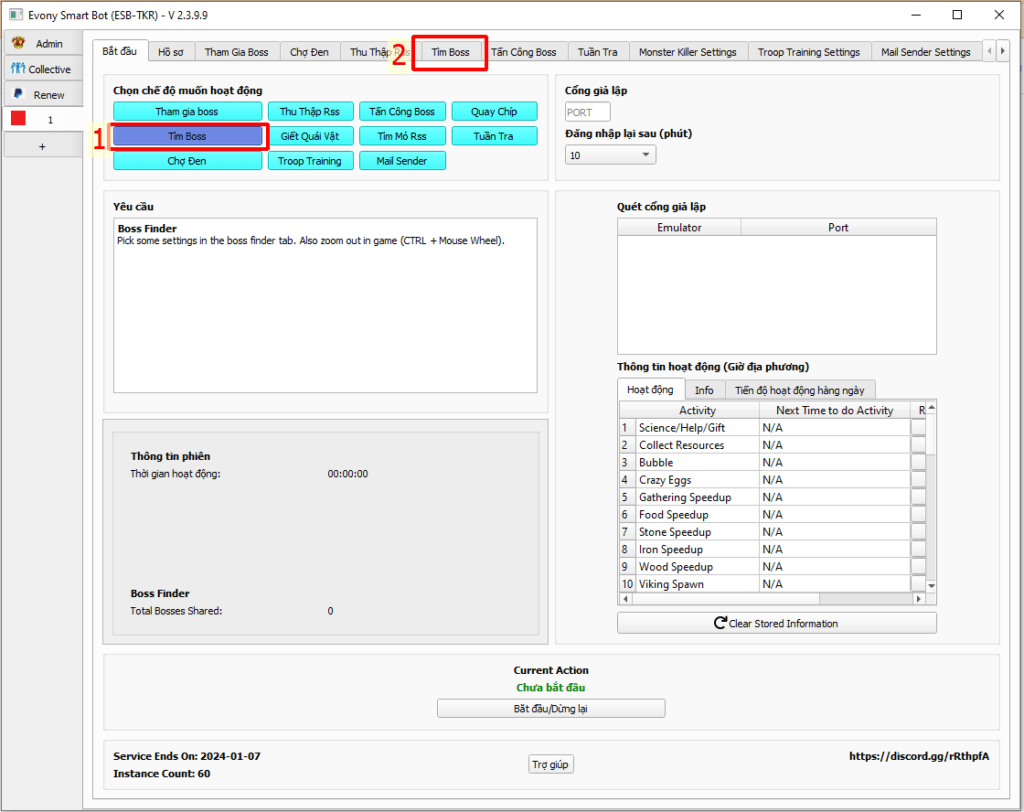 Yêu cầu 2 tài khoản để sử dụng chức năng này. 1 Tài khoản tấn công với sức mạnh cao. 1 Tài khoản đọc chat liên minh hoặc tìm kiếm boss trên bản đồ.