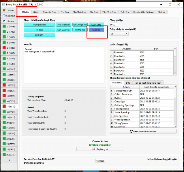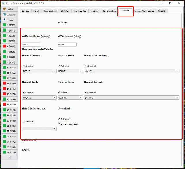 Tuần tra sẽ chỉ Tuần tra các mục sau: bạn chọn ở tab tuần tra.